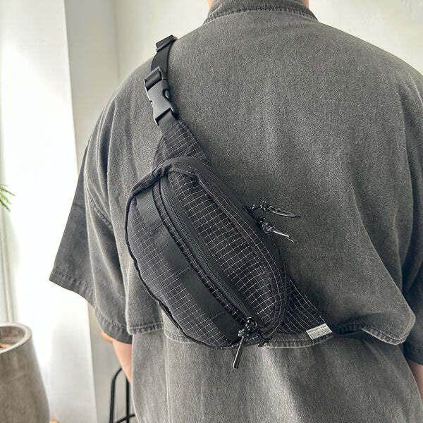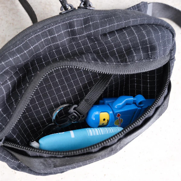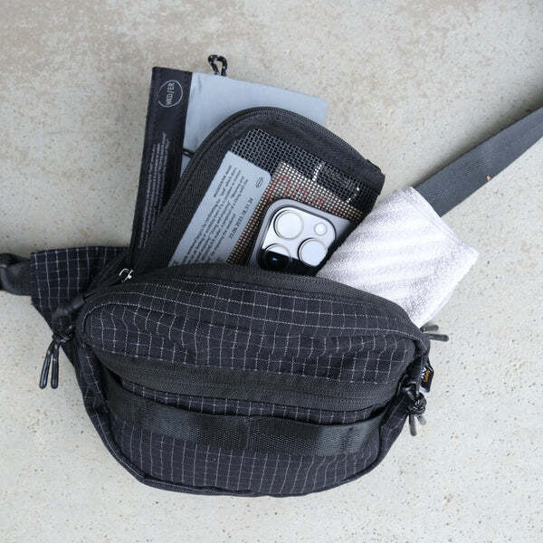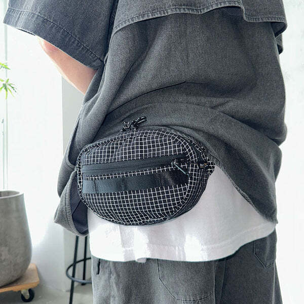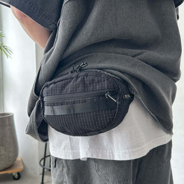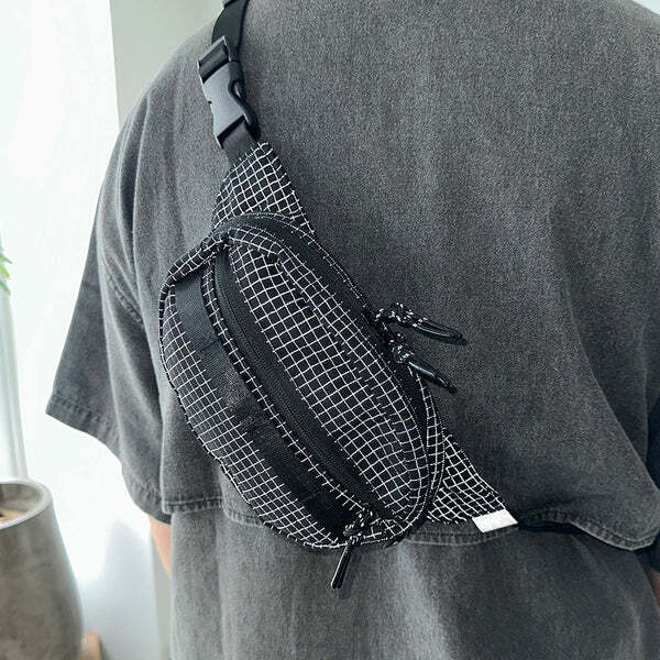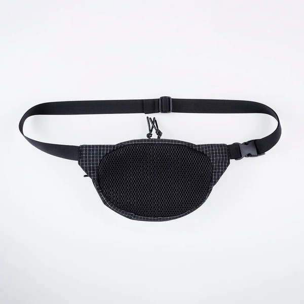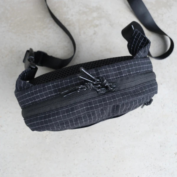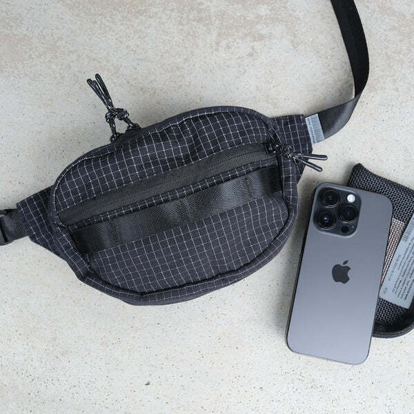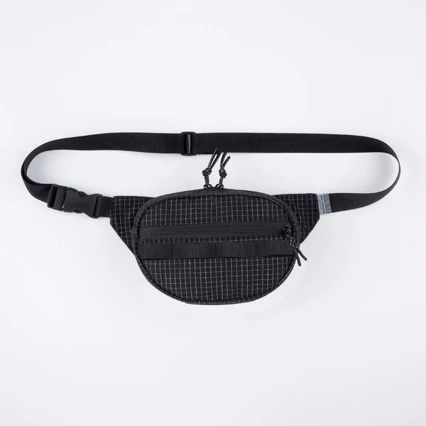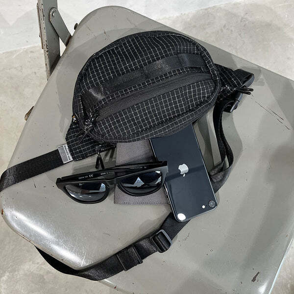 這款腰包採用 Ripstop 防撕裂布料,並在格子紋部分加入反光紗線,打造兼具耐用性與視覺效果的機能設計。當光線照射時,格紋會呈現出驚人的反射效果,讓整體造型更加吸睛。