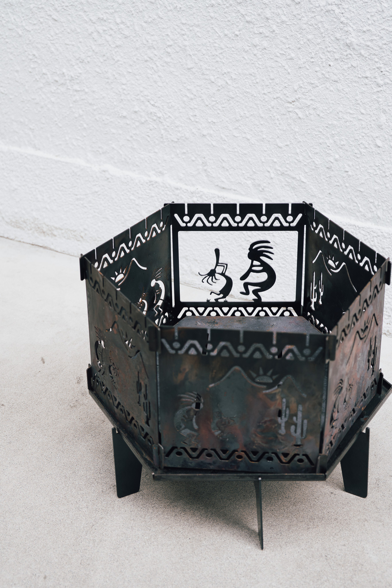 鏤空造型的焚火台很常見,不過這款焚火台是以美國精靈KOKOPELLI為靈感所設計出來的產品。