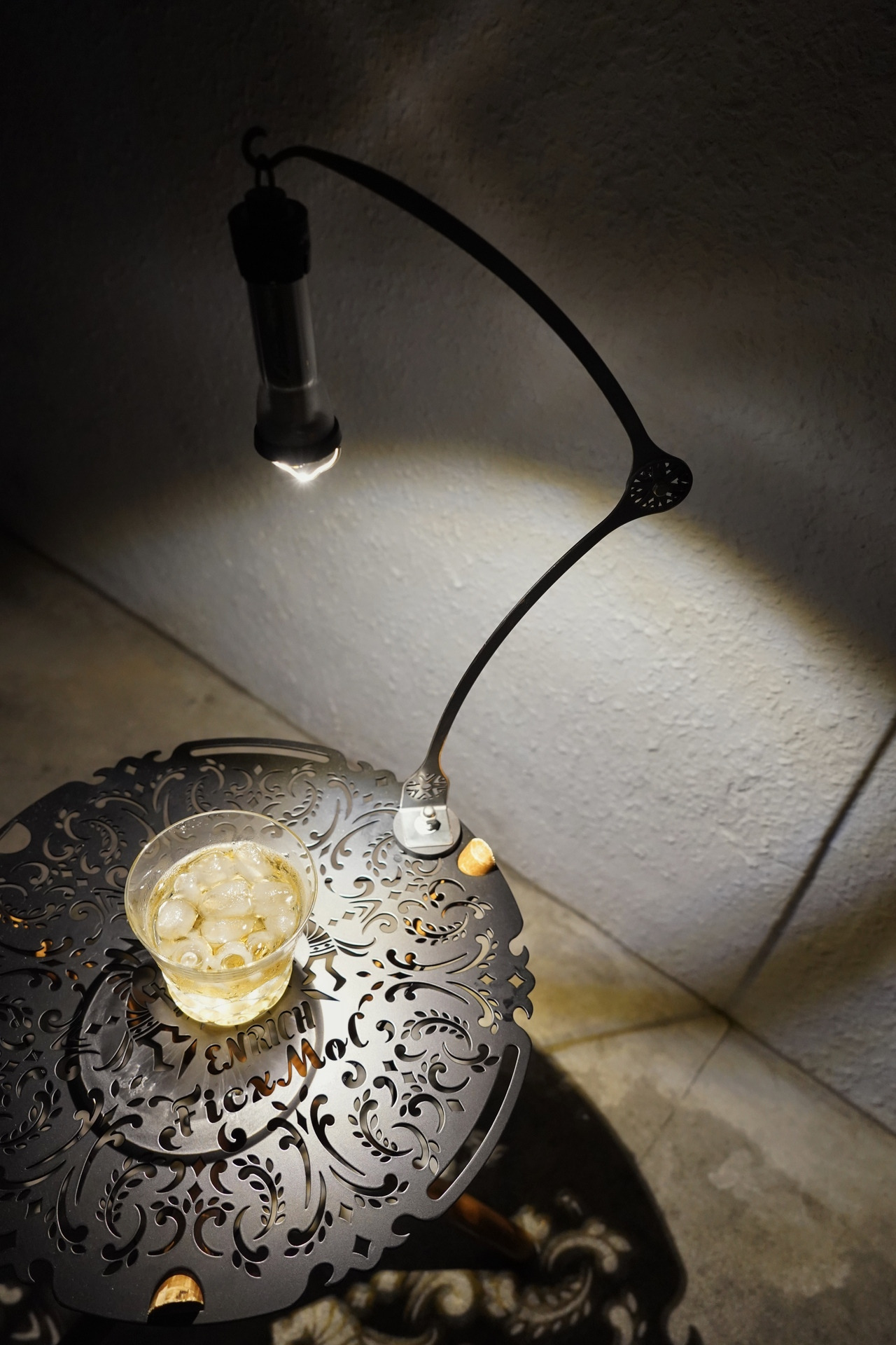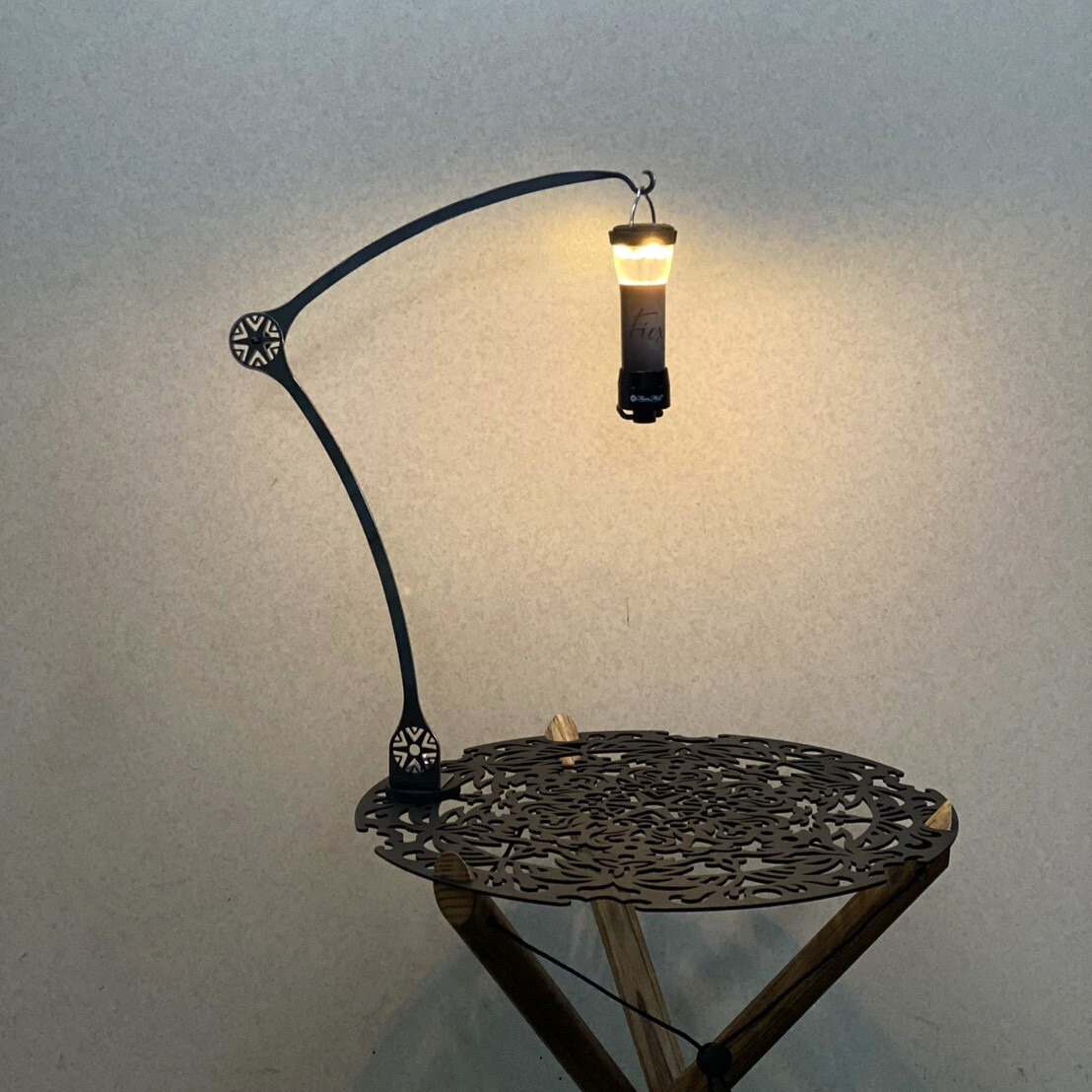 只要旋轉 FicxMoC 花紋 中間的螺絲即可調整角度,並可將燈柱的上下兩邊收起以及展開