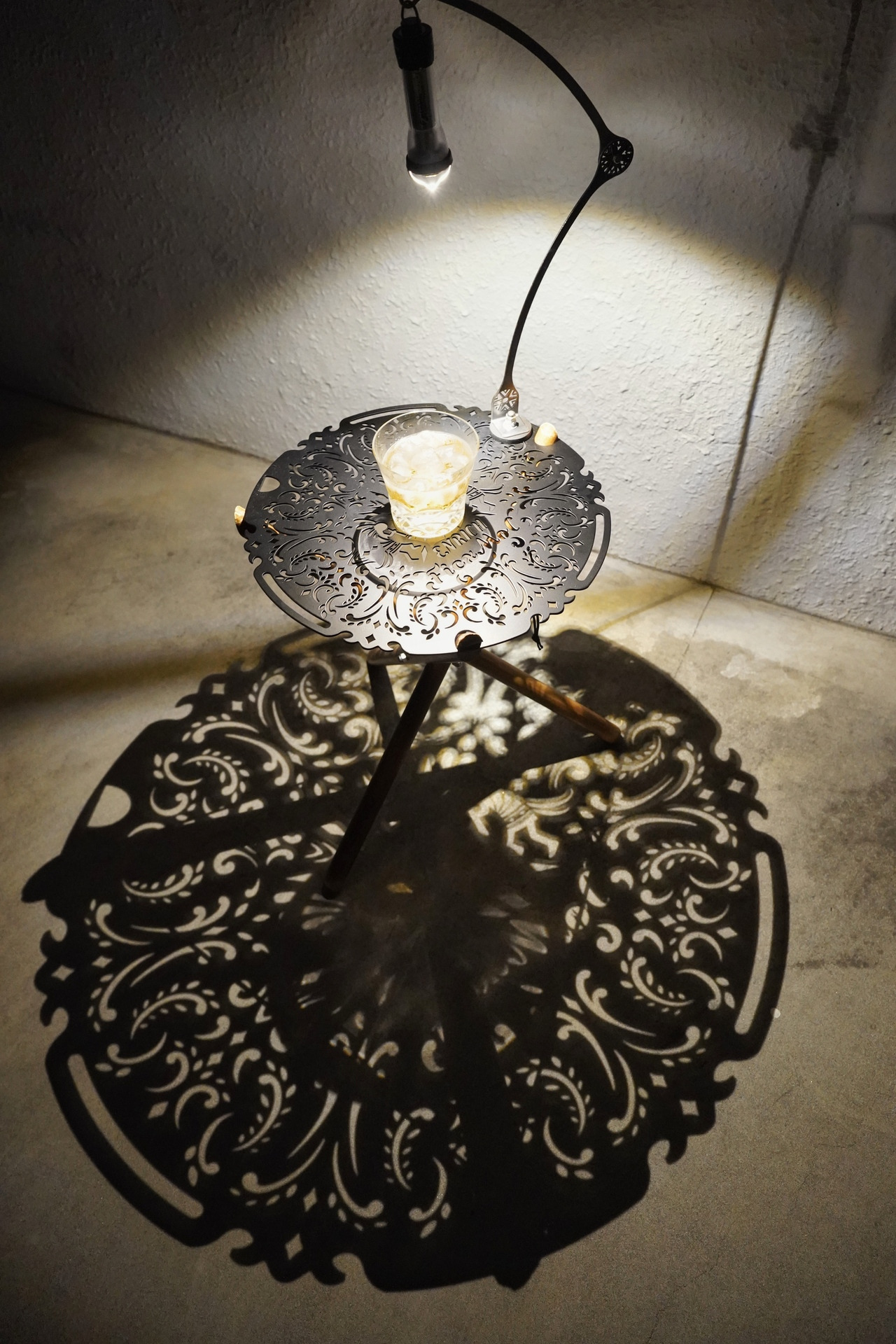 將燈具用D扣倒著掛,即可以在地板打造出美麗光影