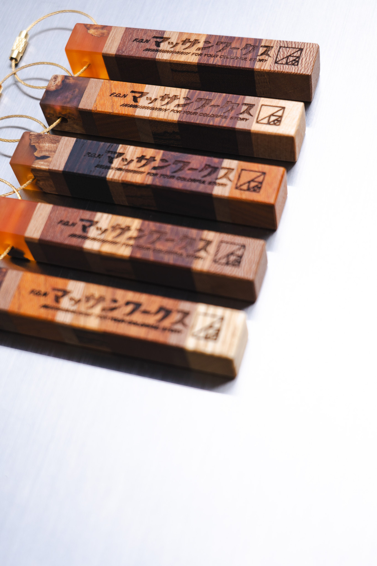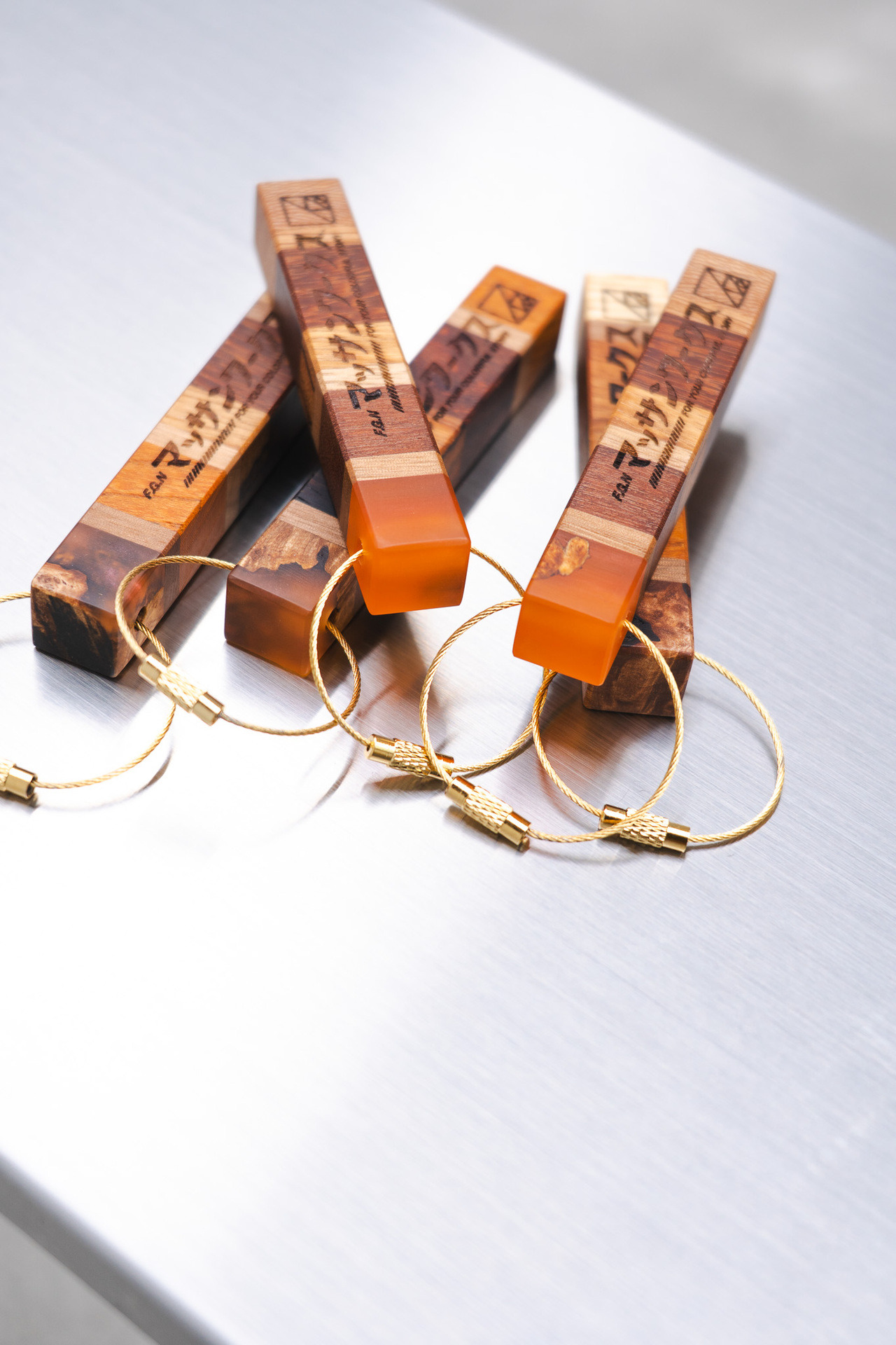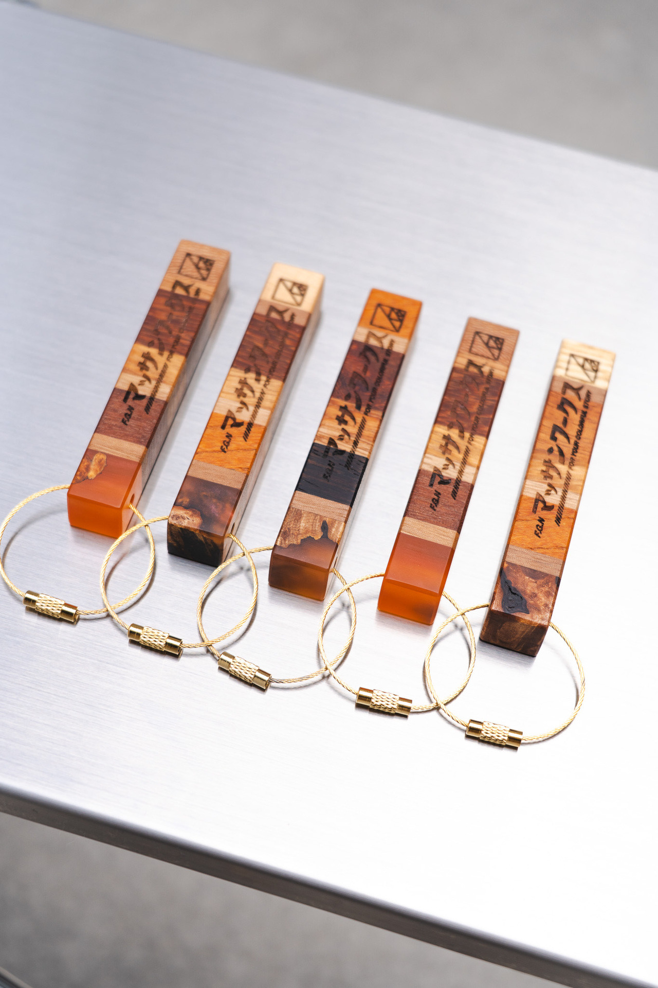 此商品為日本木工職人品牌mas3.works 2005年末推出的最新商品手工拼木鑰匙圈。