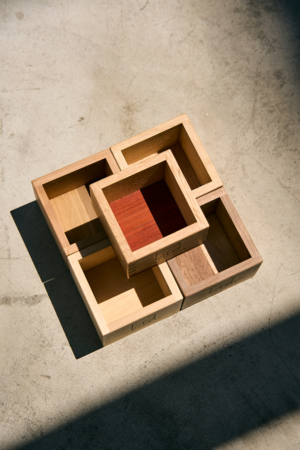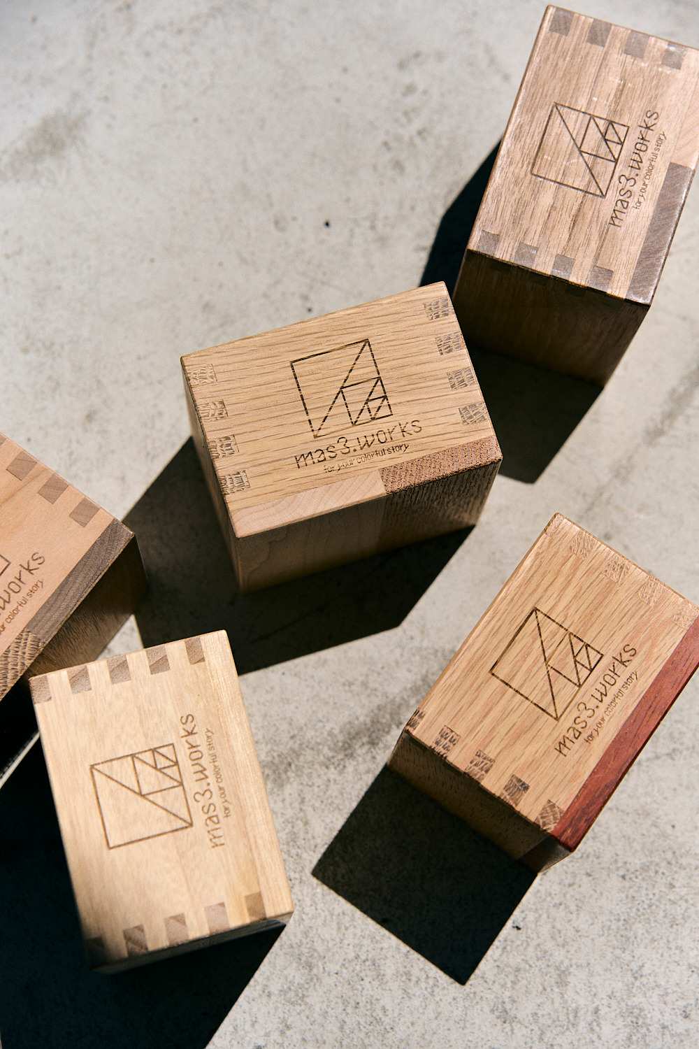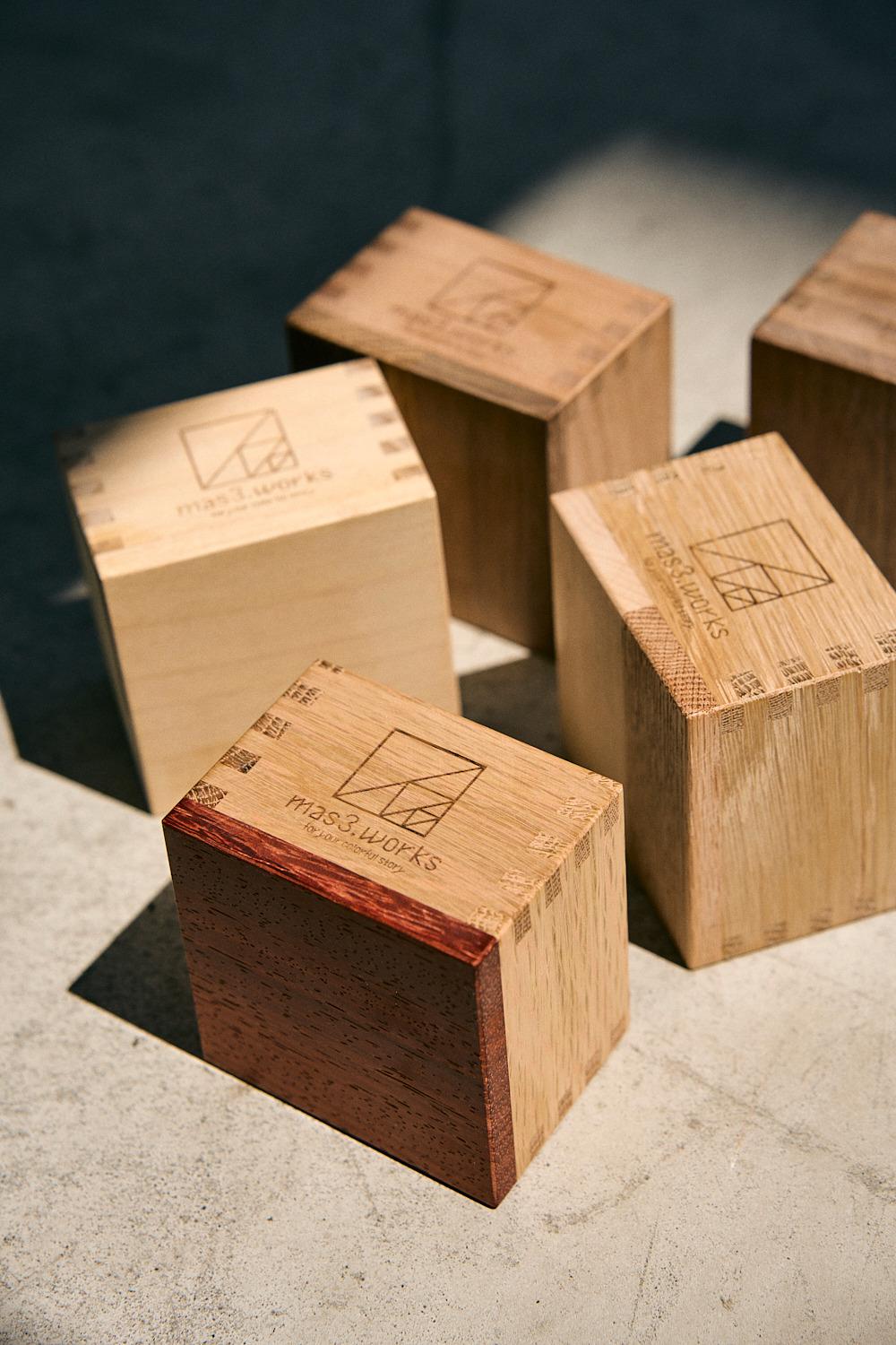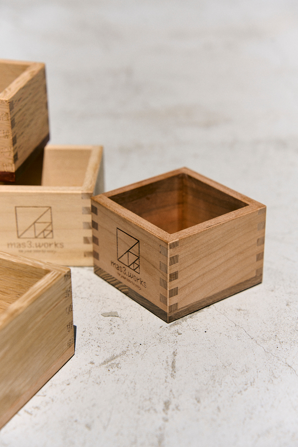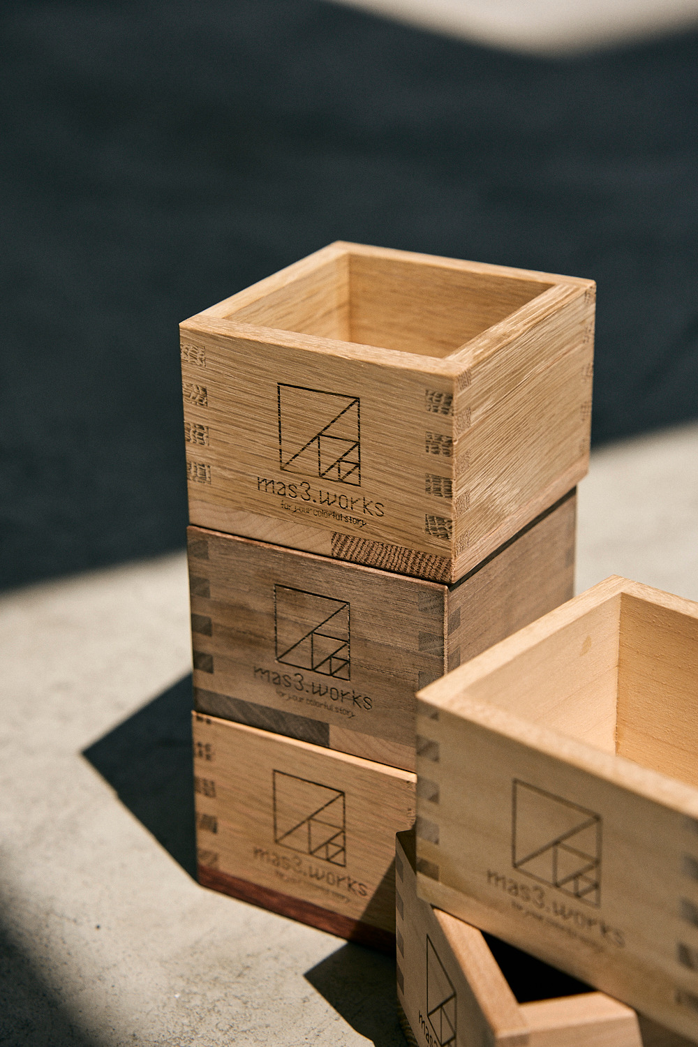 想著想著感覺滿有趣的,於是mas3. works的主理人就著手製作這款利用多種特殊的木材拼接而製成的手工「枡」了。
